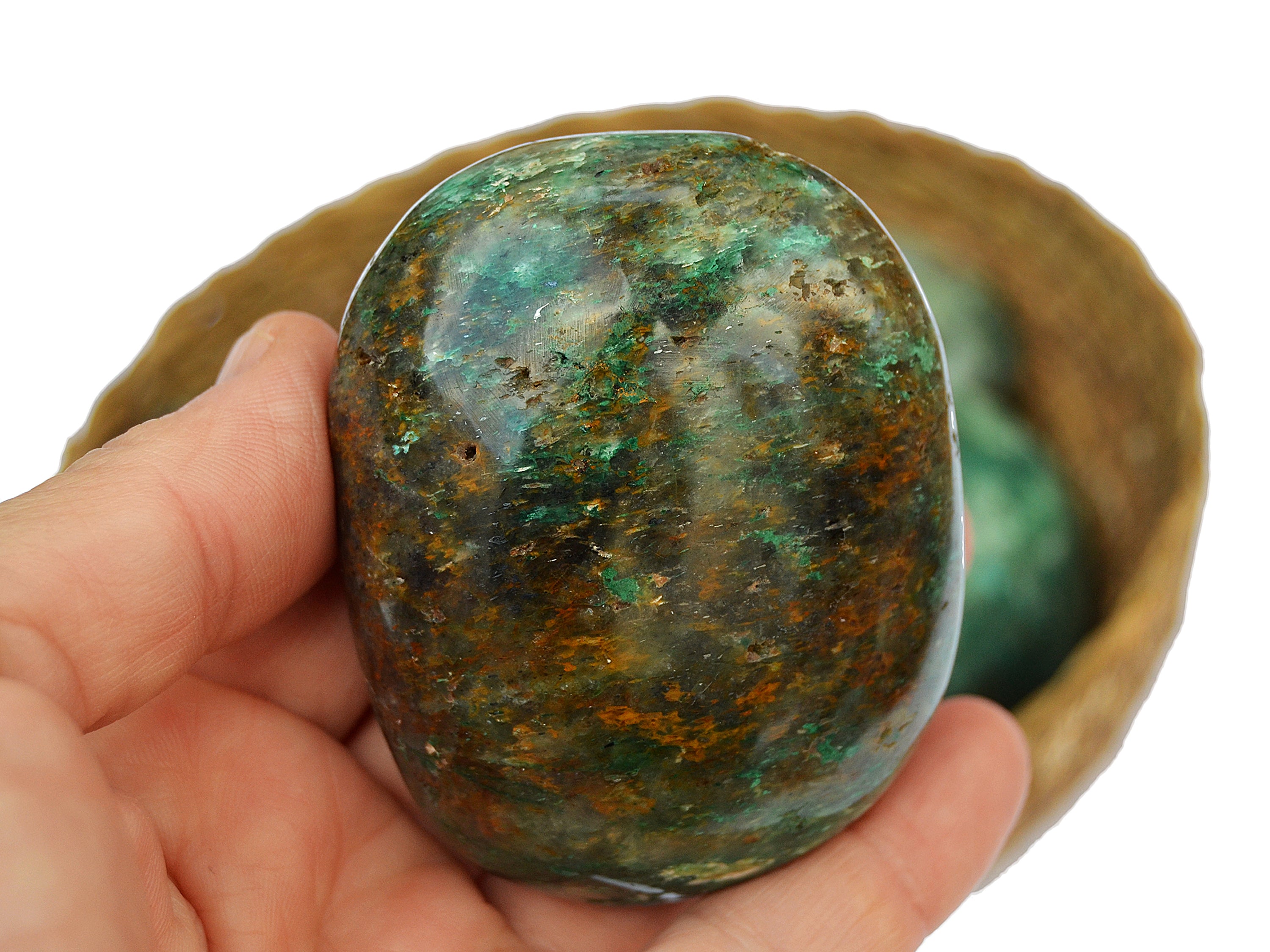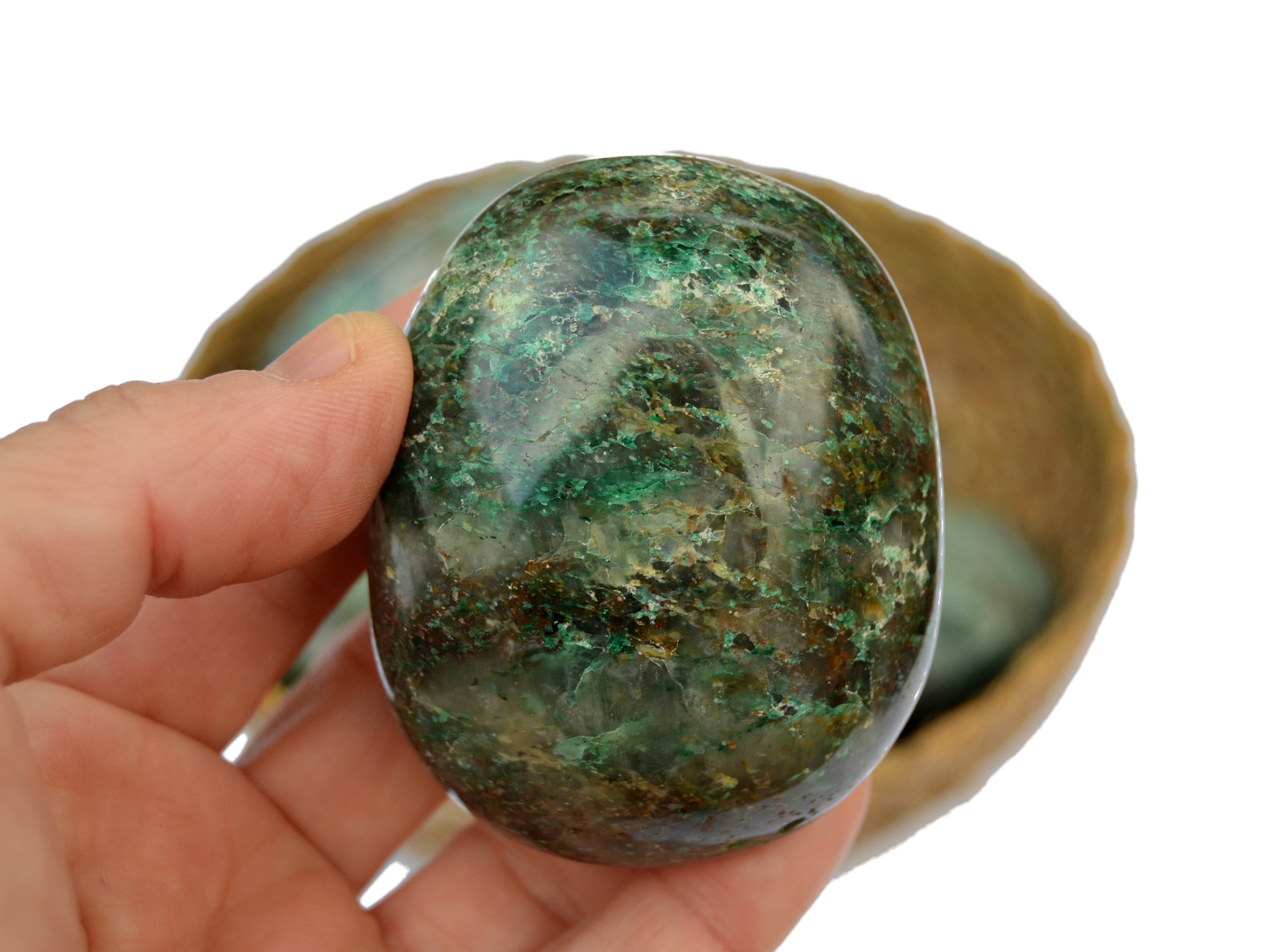 Natural chrysocolla palm stone. You get one chrysocolla gallet very similar to appear in image above, picked at random. Please expect some slight variation in terms of color, transparency, size and shape, as there are some variations unique for each stone. Note that all crystals are natural, so sometimes little imperfections can appear.