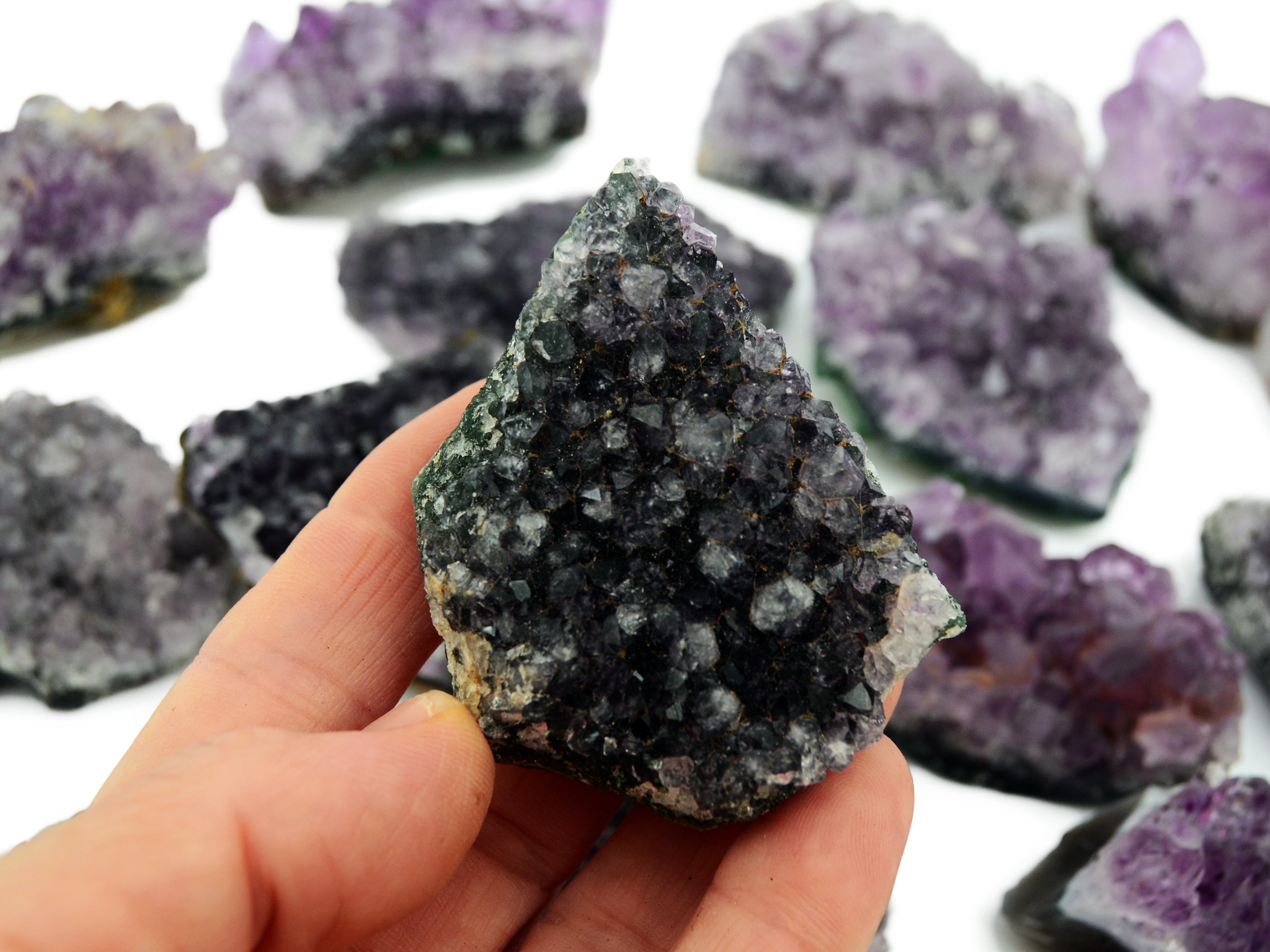 Lot of amethyst druzy crystal. You get 250g or 500g of amethyst clusters very similar to appear in image above, picked at random. Please expect some slight variation in terms of color, transparency, size and shape, as there are some variations unique for each stone. Note that all crystals are natural, so sometimes little imperfections can appear.