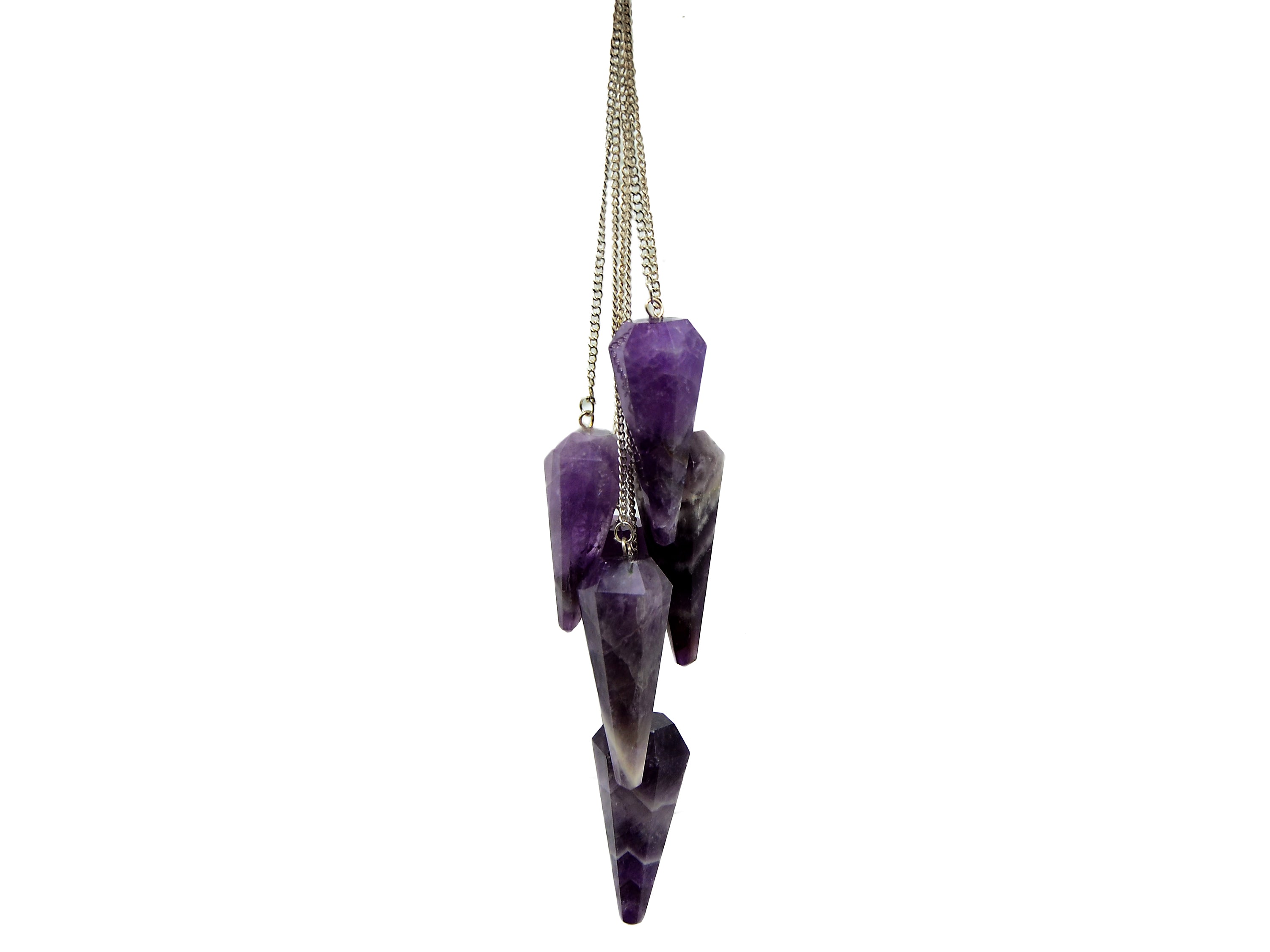 Amethyst faceted pendulum. You will receive a natural stone pendulum featuring a small clear quartz bead at the end of the chain, very similar to the image above, picked at random. Please expect some slight variation in terms of color, size and shape, as there are some variations unique for each stone. Note that all crystals are natural, so sometimes little imperfections can appear.