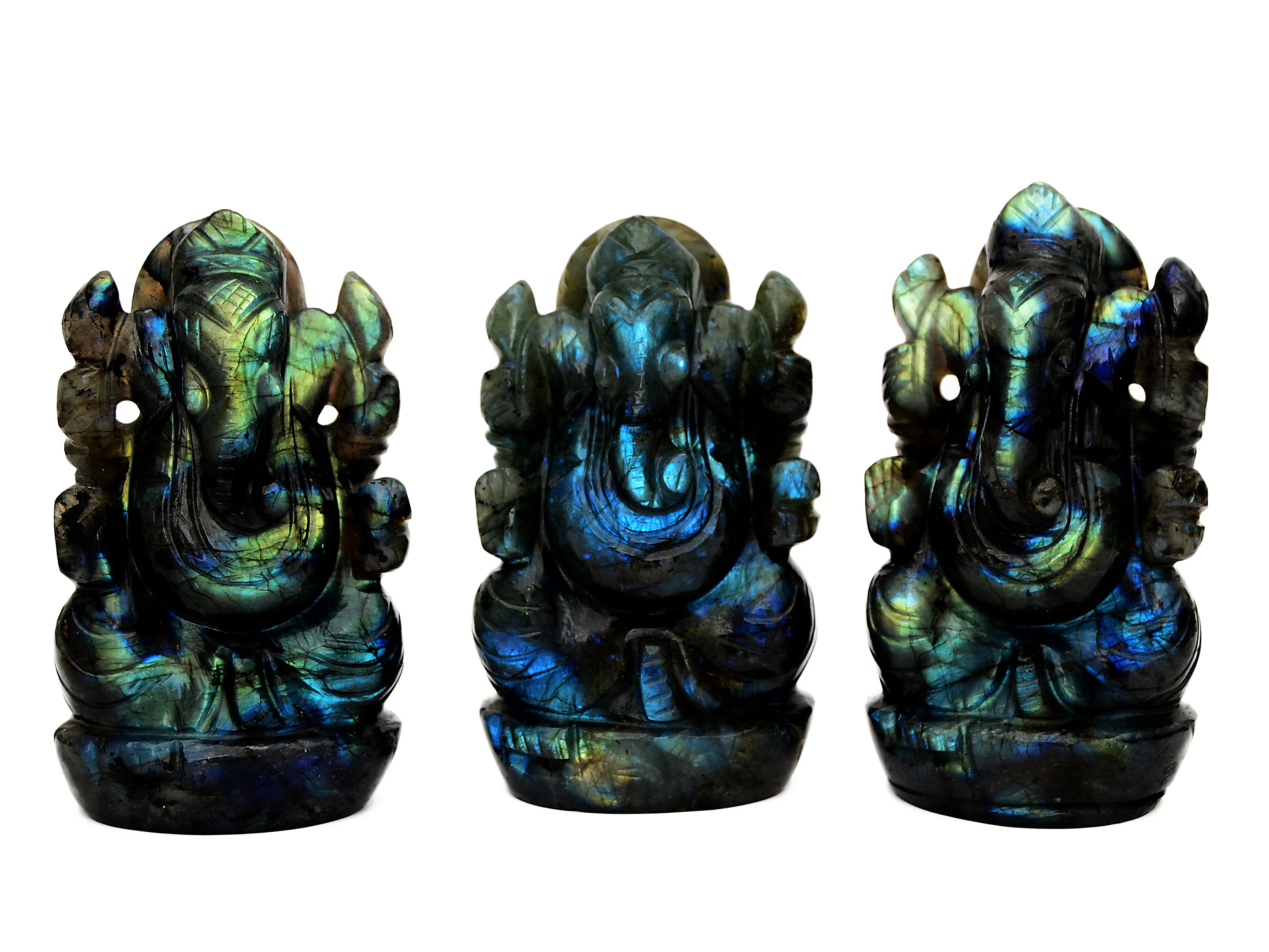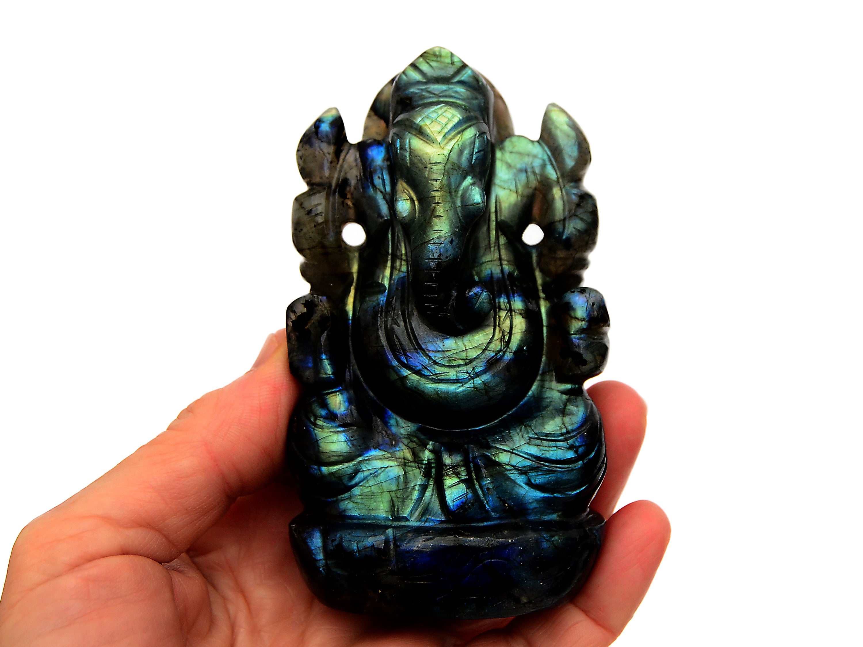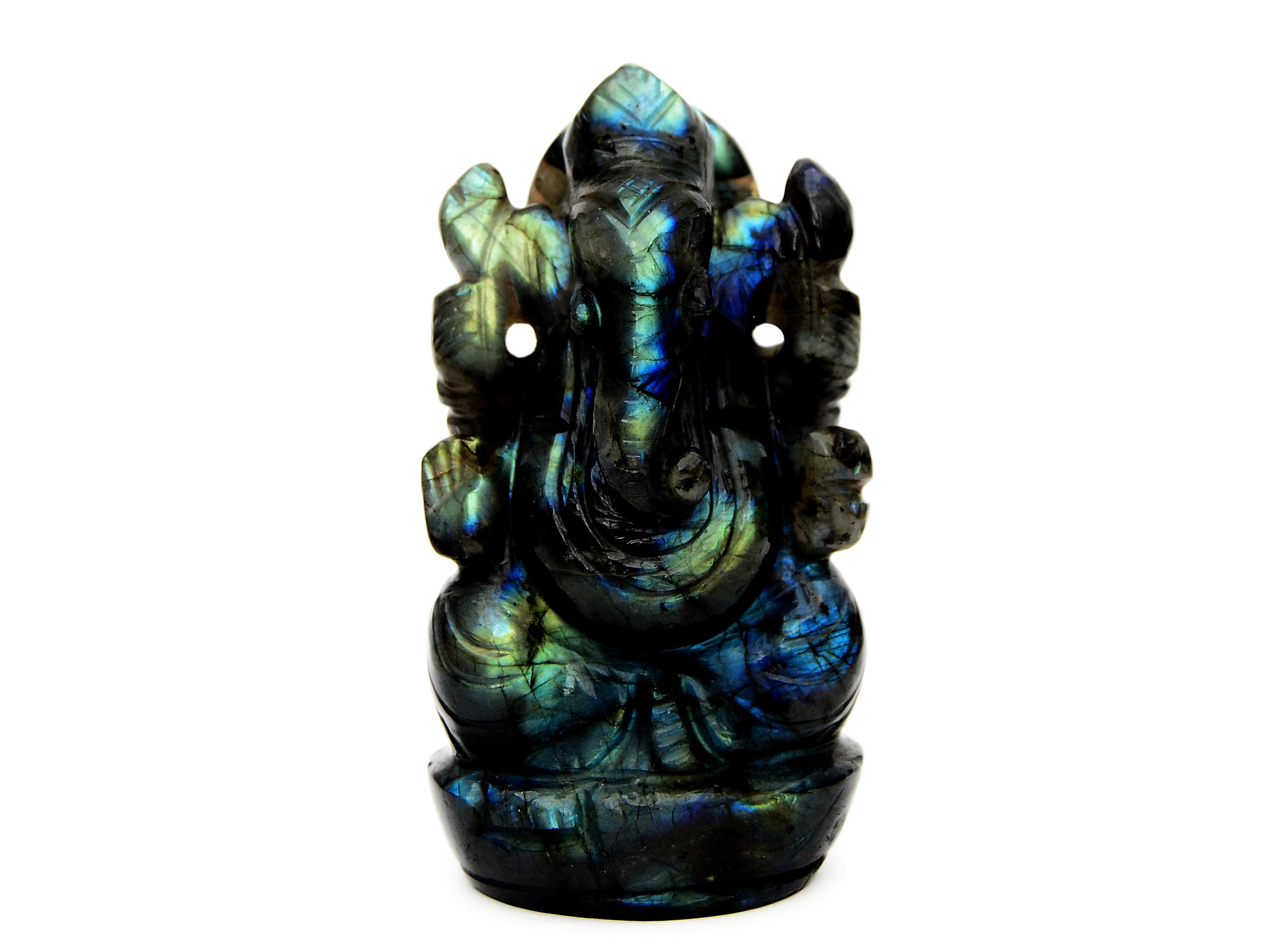 Labradorite Ganesha deity figure. You choose one hand-carved crystal sculpture that appear in image above. Note that all crystals are natural, so sometimes little imperfections can appear.