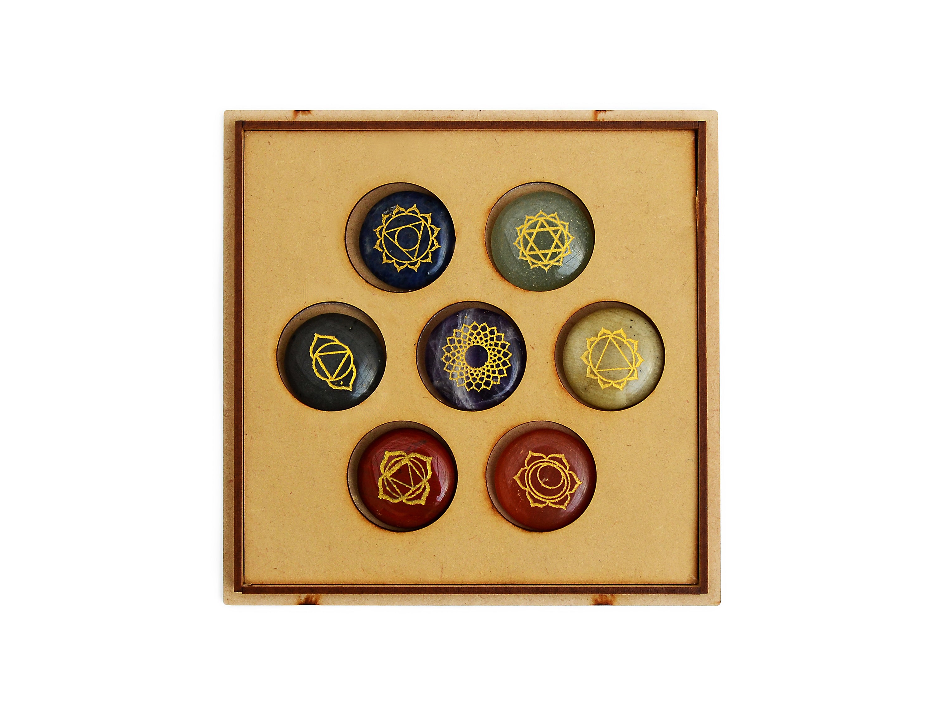 7 Chakra Engraved Stone Set – Healing Crystals for Meditation & Energy Balance