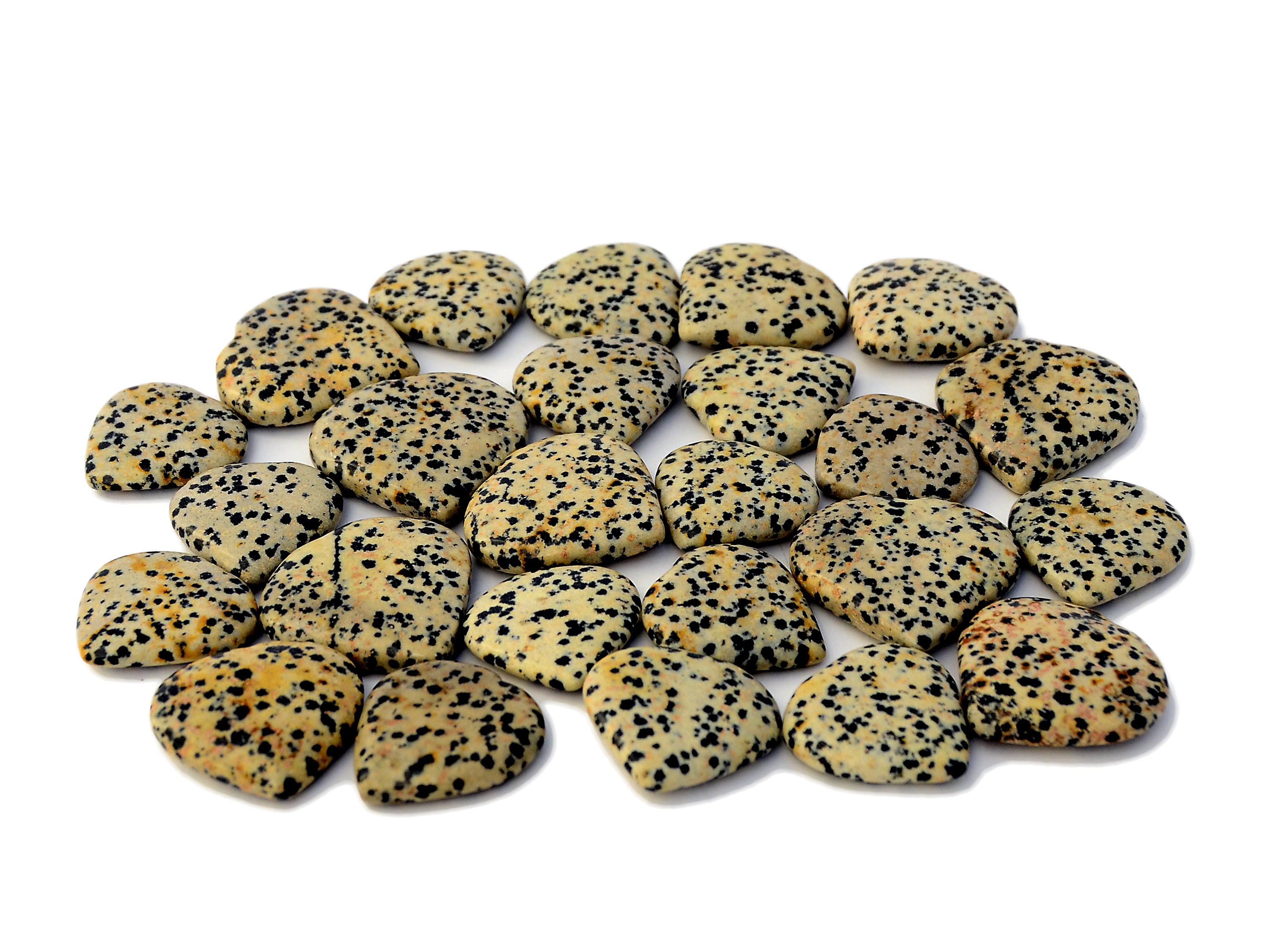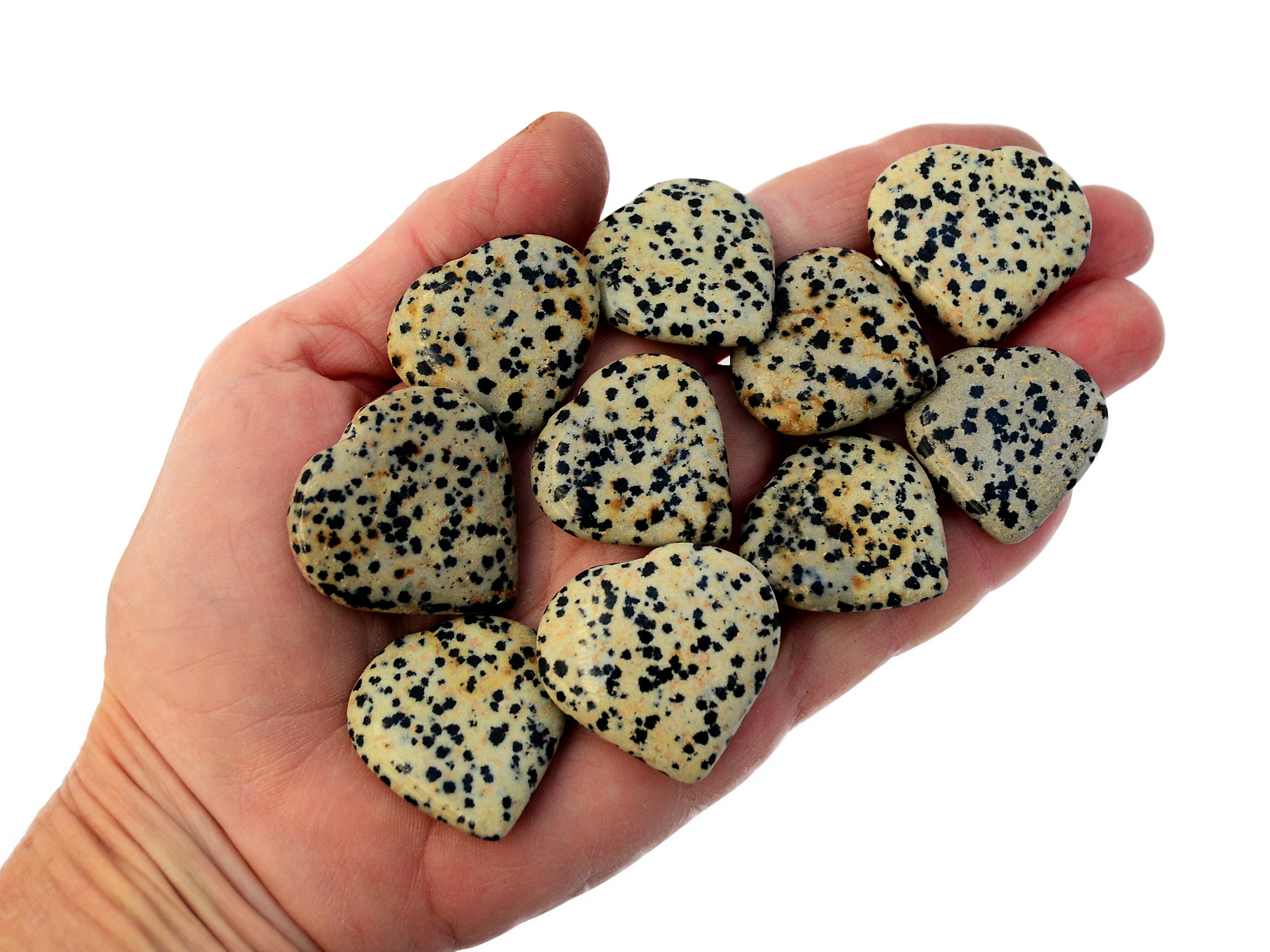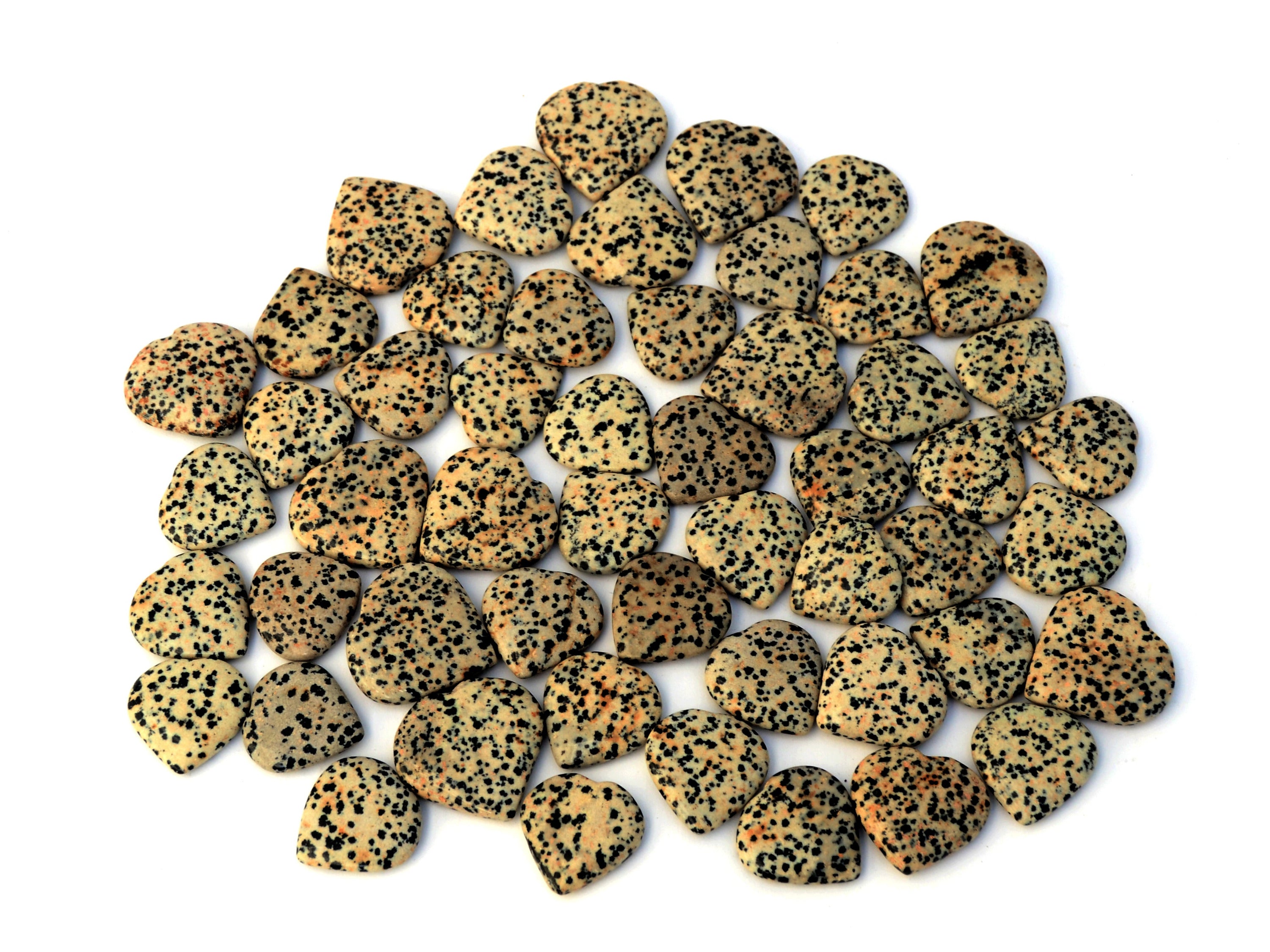 Small dalmatian jasper heart. You get one carved stone very similar to appear in image above, picked at random. Please expect some slight variation in terms of color and transparency, as there are some variations unique for each stone. Note that all crystals are natural, so sometimes little imperfections can appear.