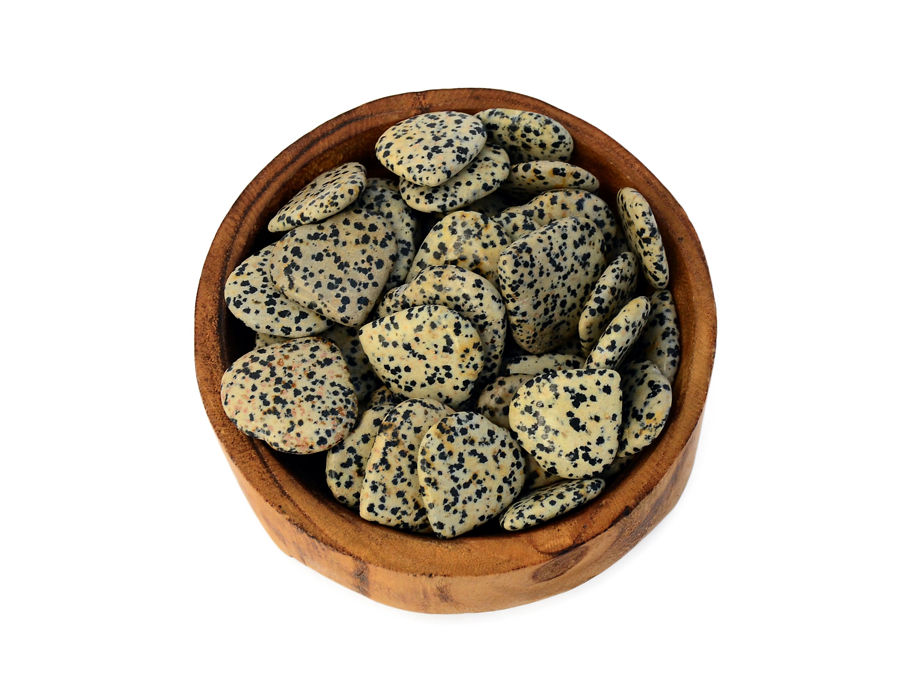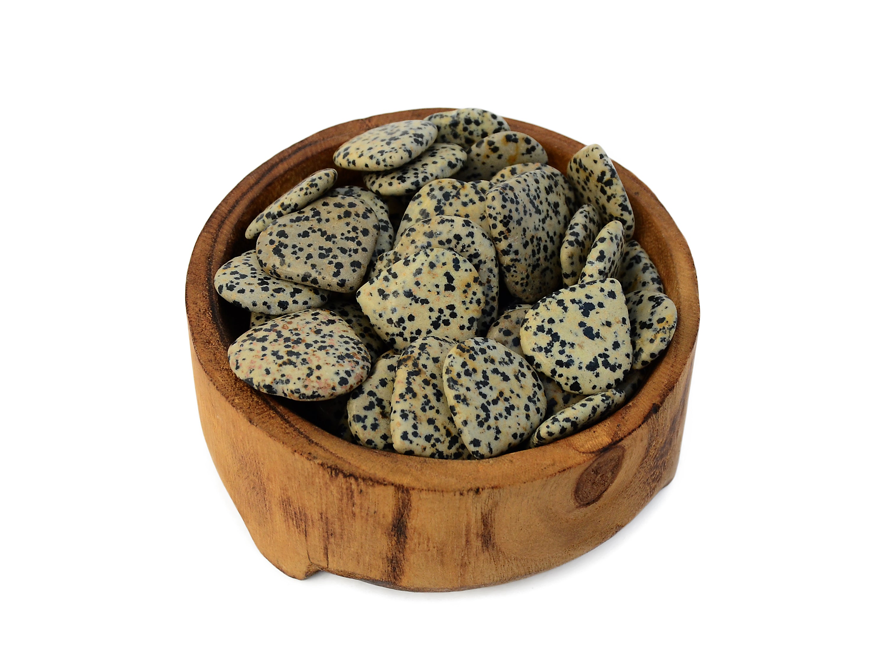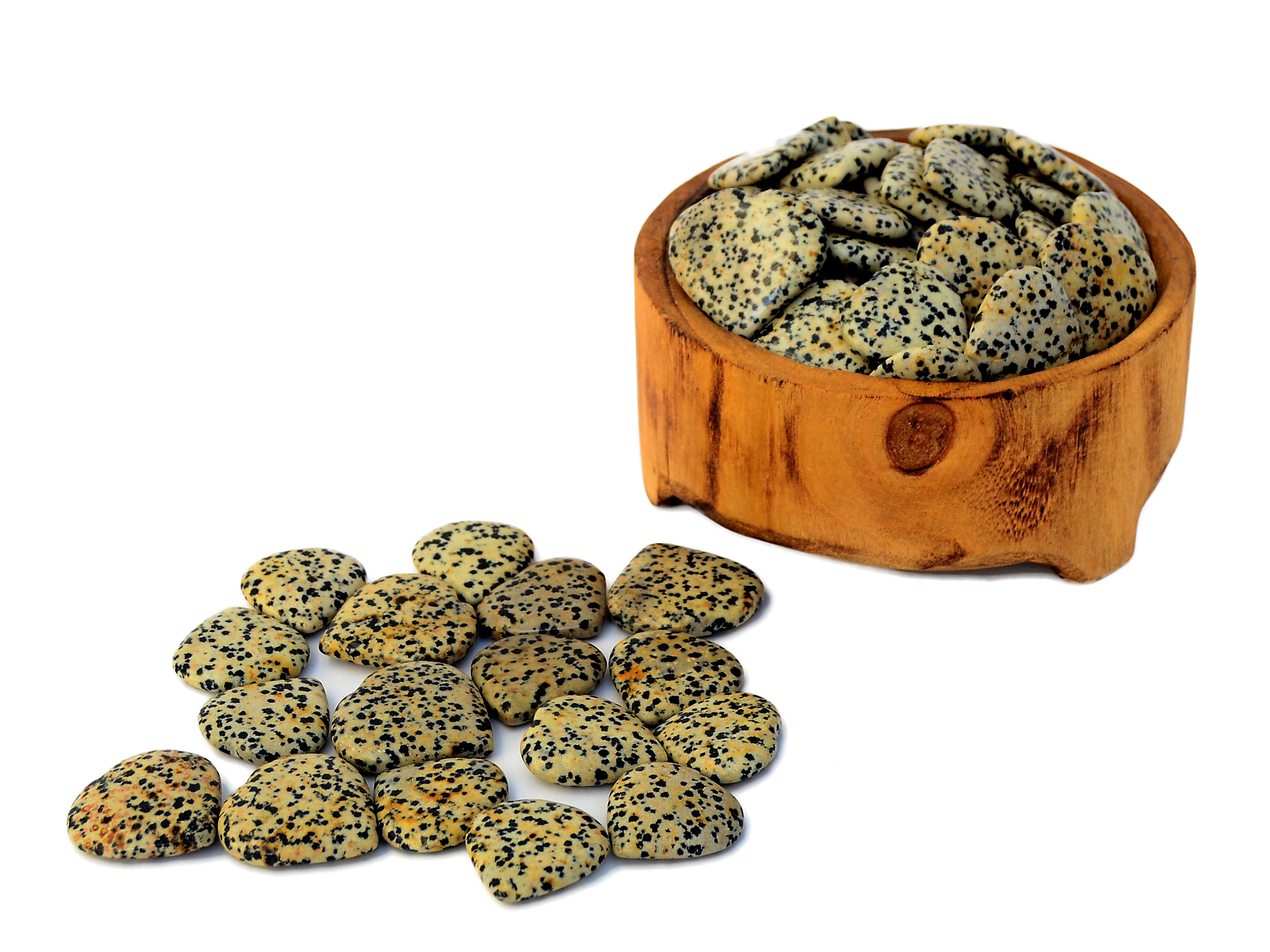 Small dalmatian jasper heart. You get one carved stone very similar to appear in image above, picked at random. Please expect some slight variation in terms of color and transparency, as there are some variations unique for each stone. Note that all crystals are natural, so sometimes little imperfections can appear.