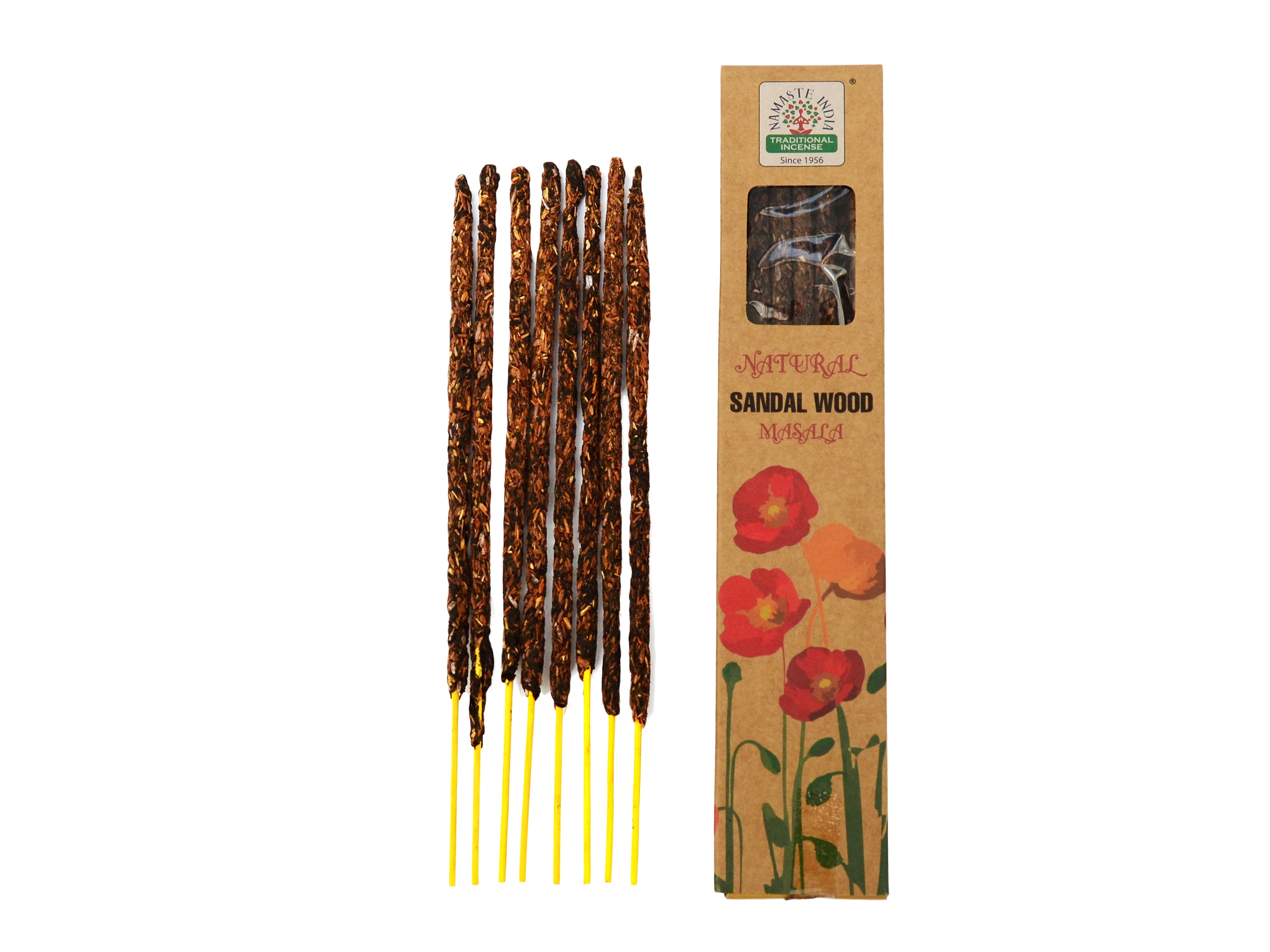 This natural masala Sandalwood incense is handcrafted in India using a traditional blend of 100% natural herbs, woods, resins, and essential oils. Its warm and grounding fragrance is designed to create a relaxing, purifying, and spiritually uplifting ambiance.