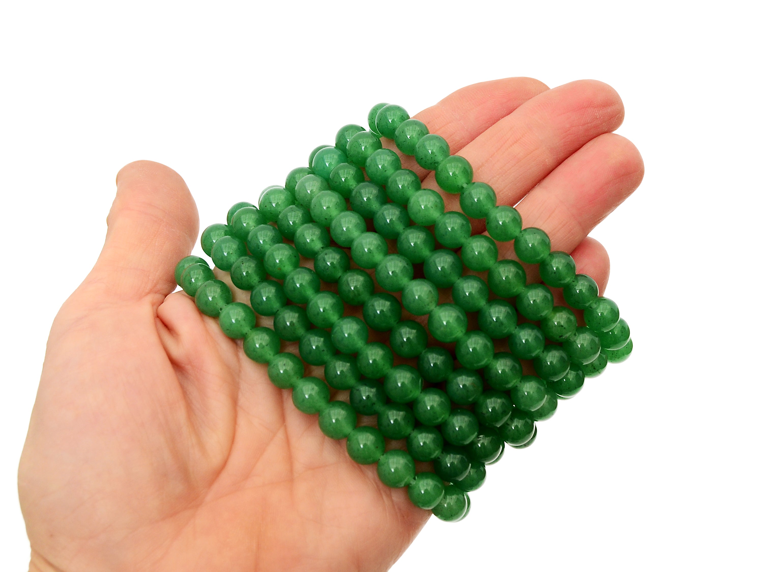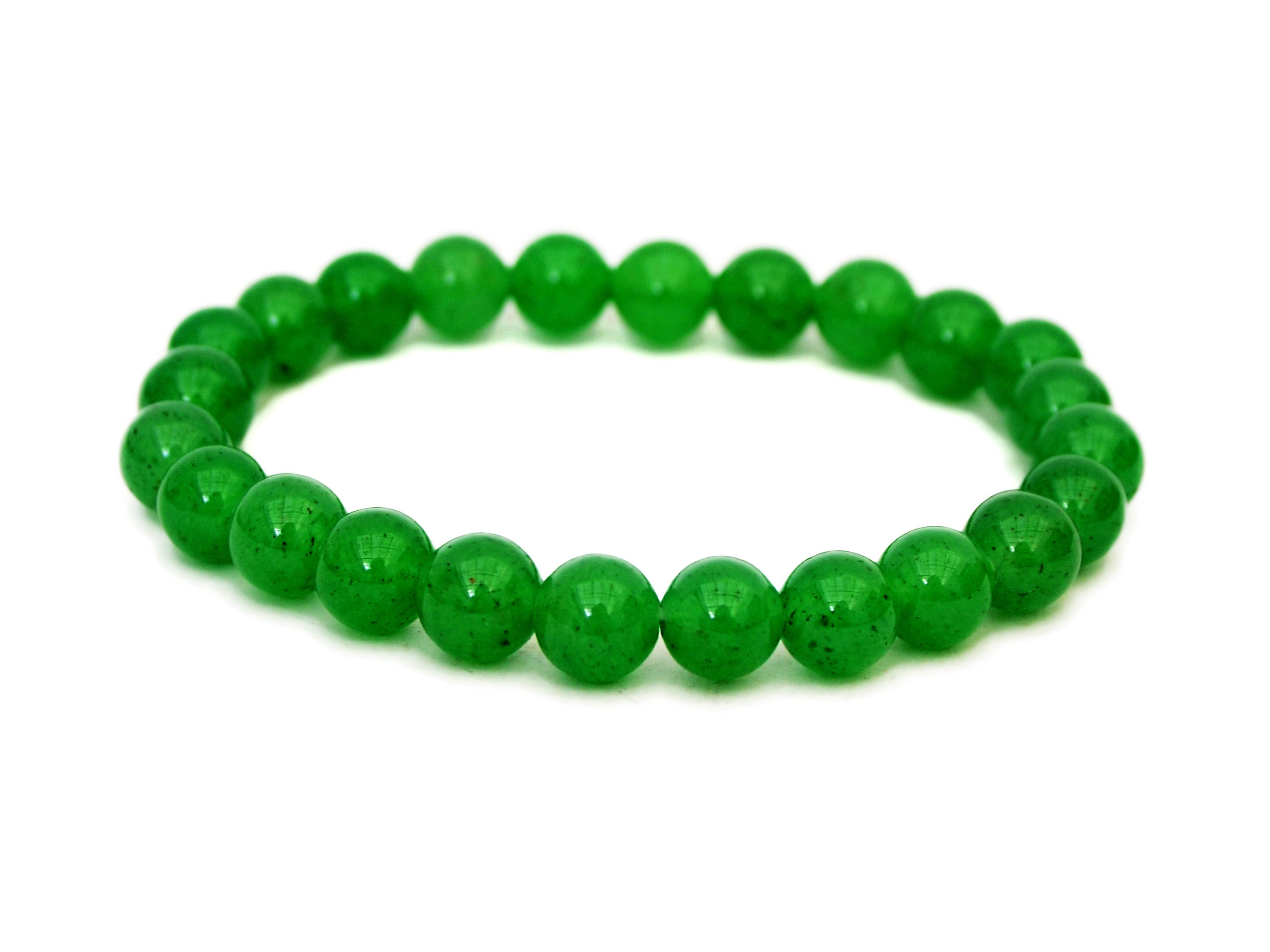Grüner Aventurin-Armband. Sie erhalten ein dehnbares Perlenarmband, das dem auf dem Bild oben sehr ähnlich ist, zufällig ausgewählt. Dieses Armband ist aus hochwertigen, polierten Steinperlen gefertigt, die sorgfältig nach Farbe, Klarheit und natürlicher Schönheit ausgewählt wurden. Präzise und sorgfältig verarbeitet, verbindet es den zeitlosen Charme echten grünen Aventurins mit einem bequemen Stretch-Design, das den meisten Handgelenken passt.