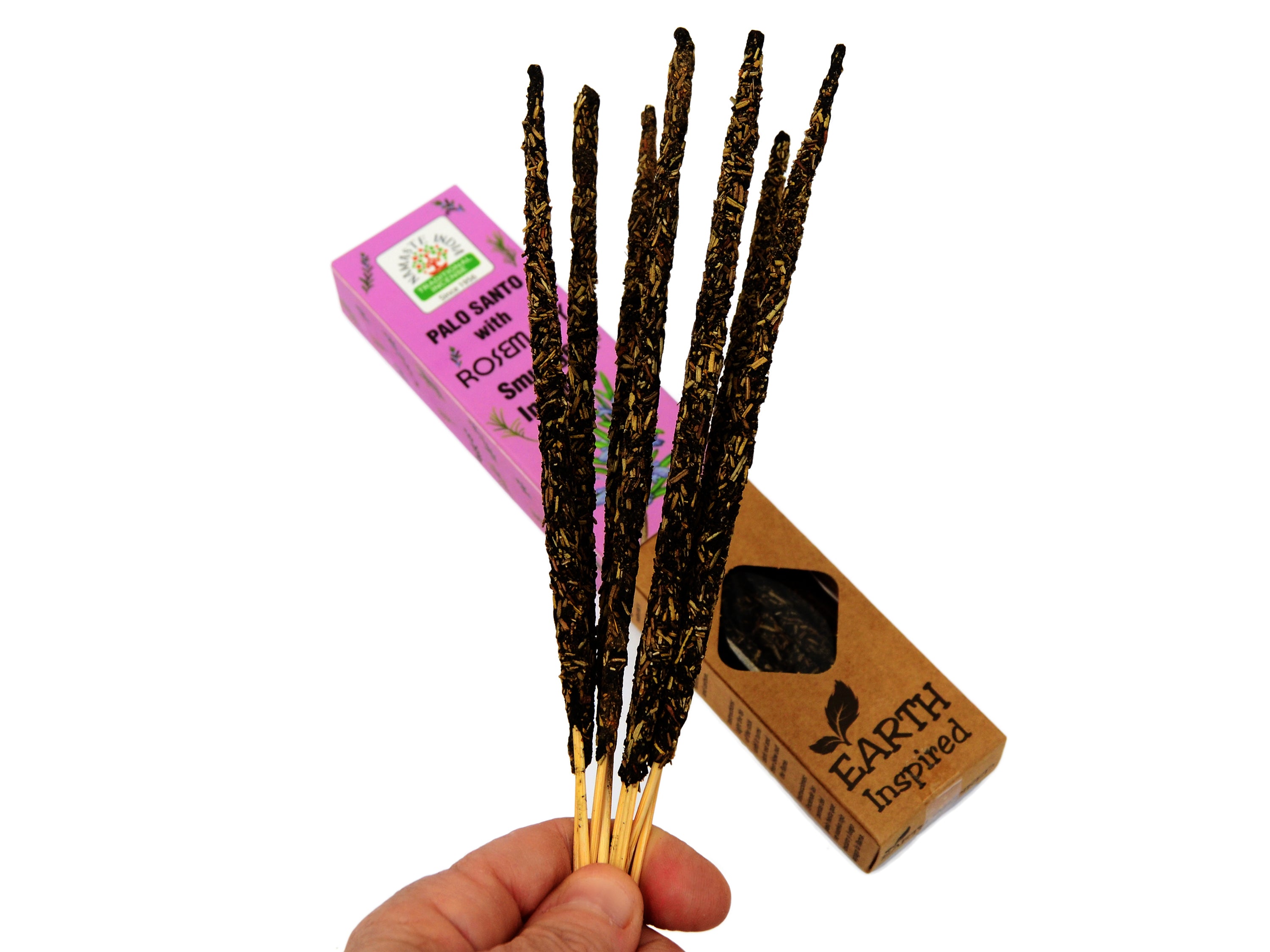 Este incienso orgánico de Palo Santo y Romero está hecho a mano en la India utilizando una mezcla tradicional masala de hierbas, maderas, resinas y aceites esenciales 100% naturales. Su fragancia fresca, amaderada y herbácea está diseñada para purificar espacios, renovar la energía estancada y crear un ambiente equilibrado y estimulante.