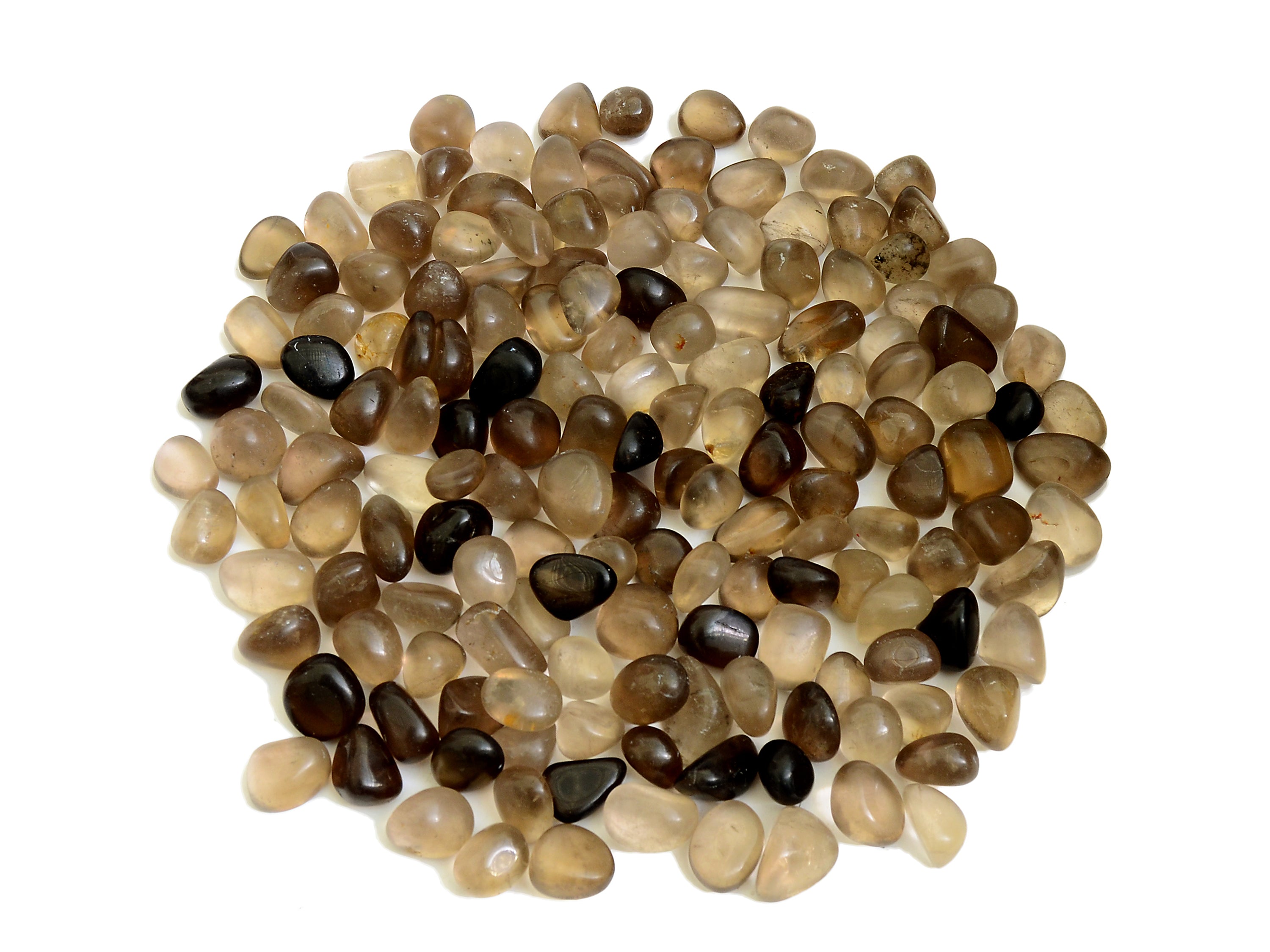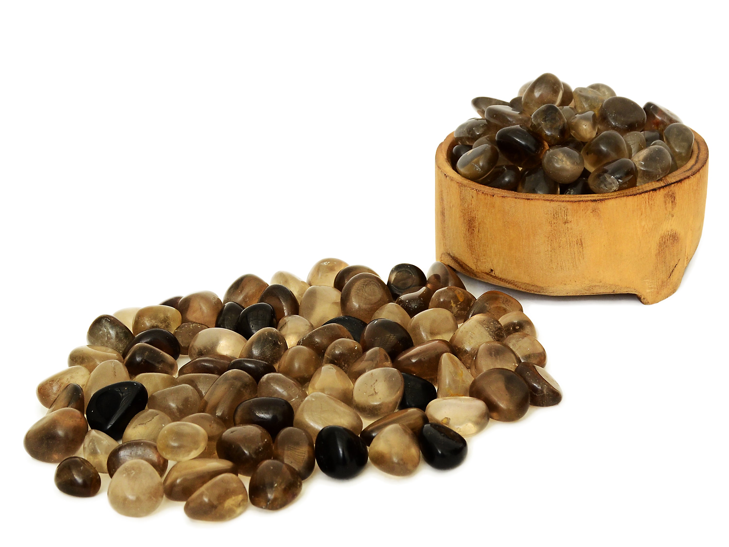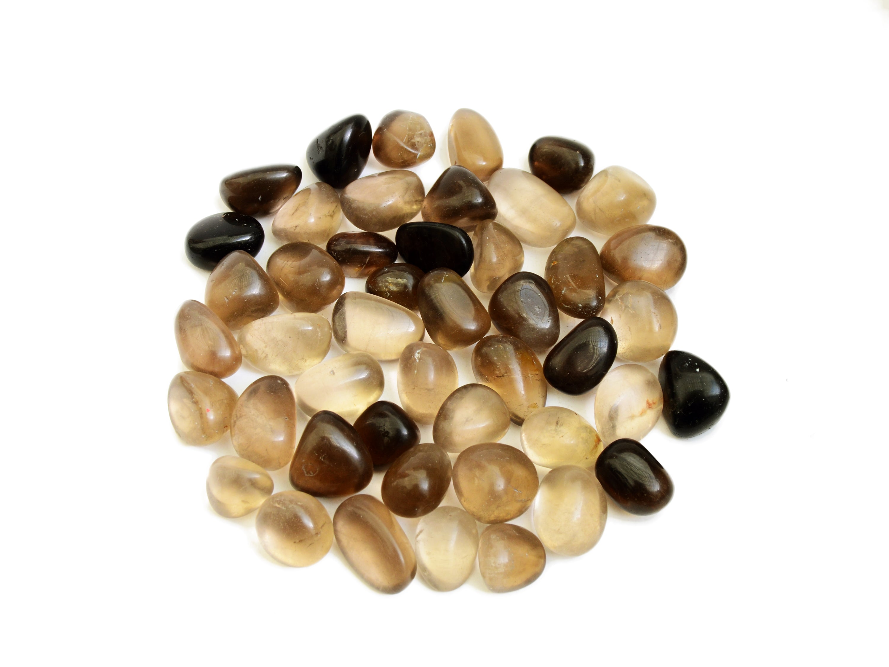 Cristales rodados de cuarzo ahumado natural. Recibes 250g, 500g o 1000g de piedras de cuarzo ahumado (20mm - 30mm) muy similares a las que aparecen en la imagen superior, seleccionadas al azar. Por favor, espera alguna ligera variación en cuanto a color, transparencia, tamaño y forma, ya que cada piedra tiene características únicas. Ten en cuenta que todos los cristales son naturales, por lo que a veces pueden aparecer pequeñas imperfecciones.