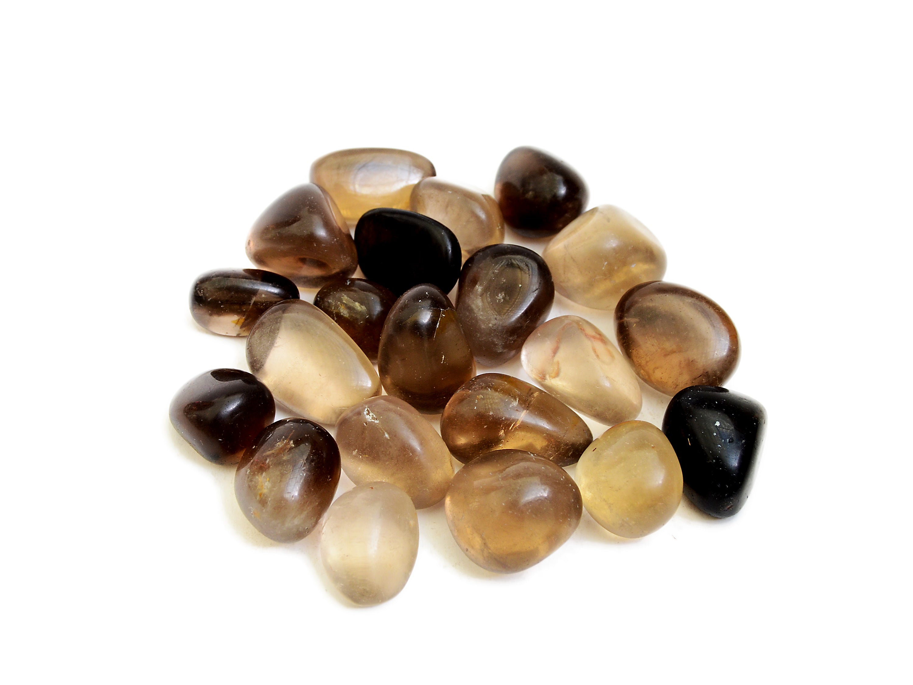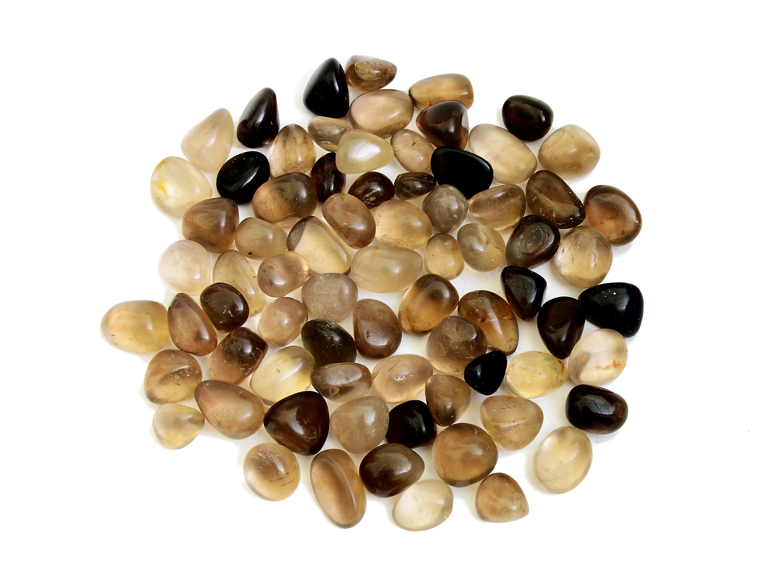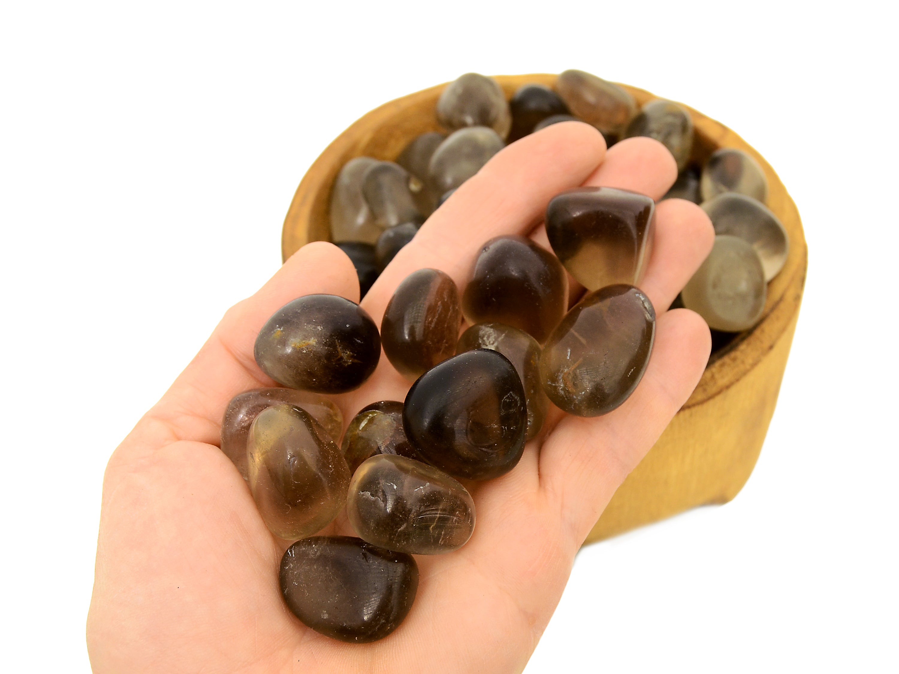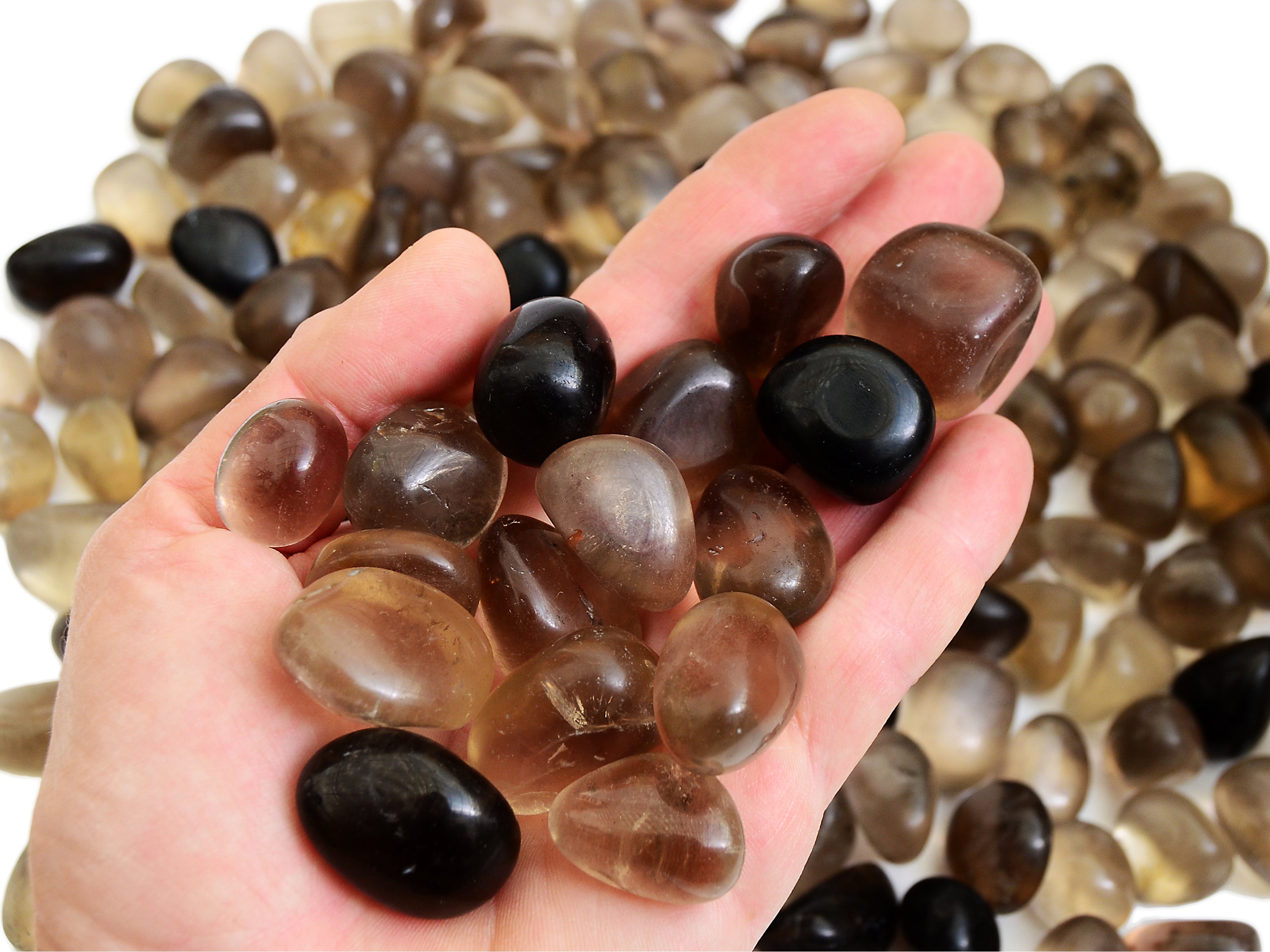 Cristales rodados de cuarzo ahumado natural. Recibes 250g, 500g o 1000g de piedras de cuarzo ahumado (20mm - 30mm) muy similares a las que aparecen en la imagen superior, seleccionadas al azar. Por favor, espera alguna ligera variación en cuanto a color, transparencia, tamaño y forma, ya que cada piedra tiene características únicas. Ten en cuenta que todos los cristales son naturales, por lo que a veces pueden aparecer pequeñas imperfecciones.