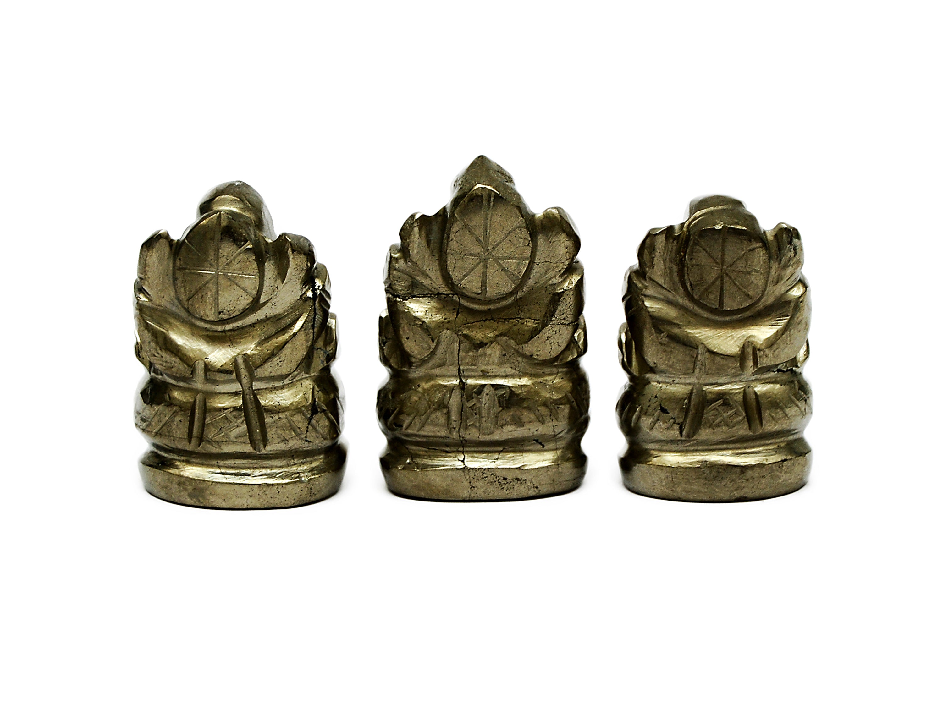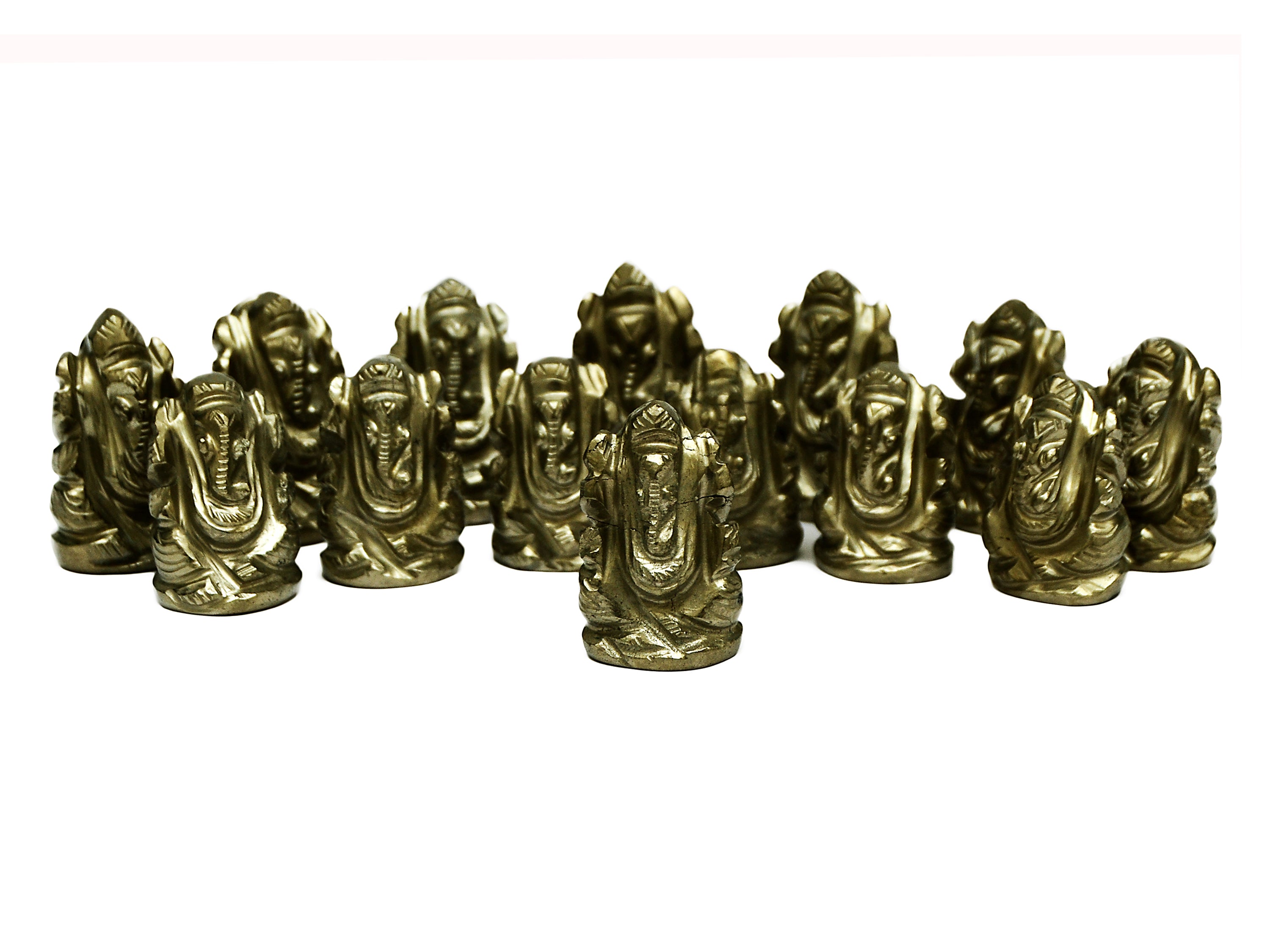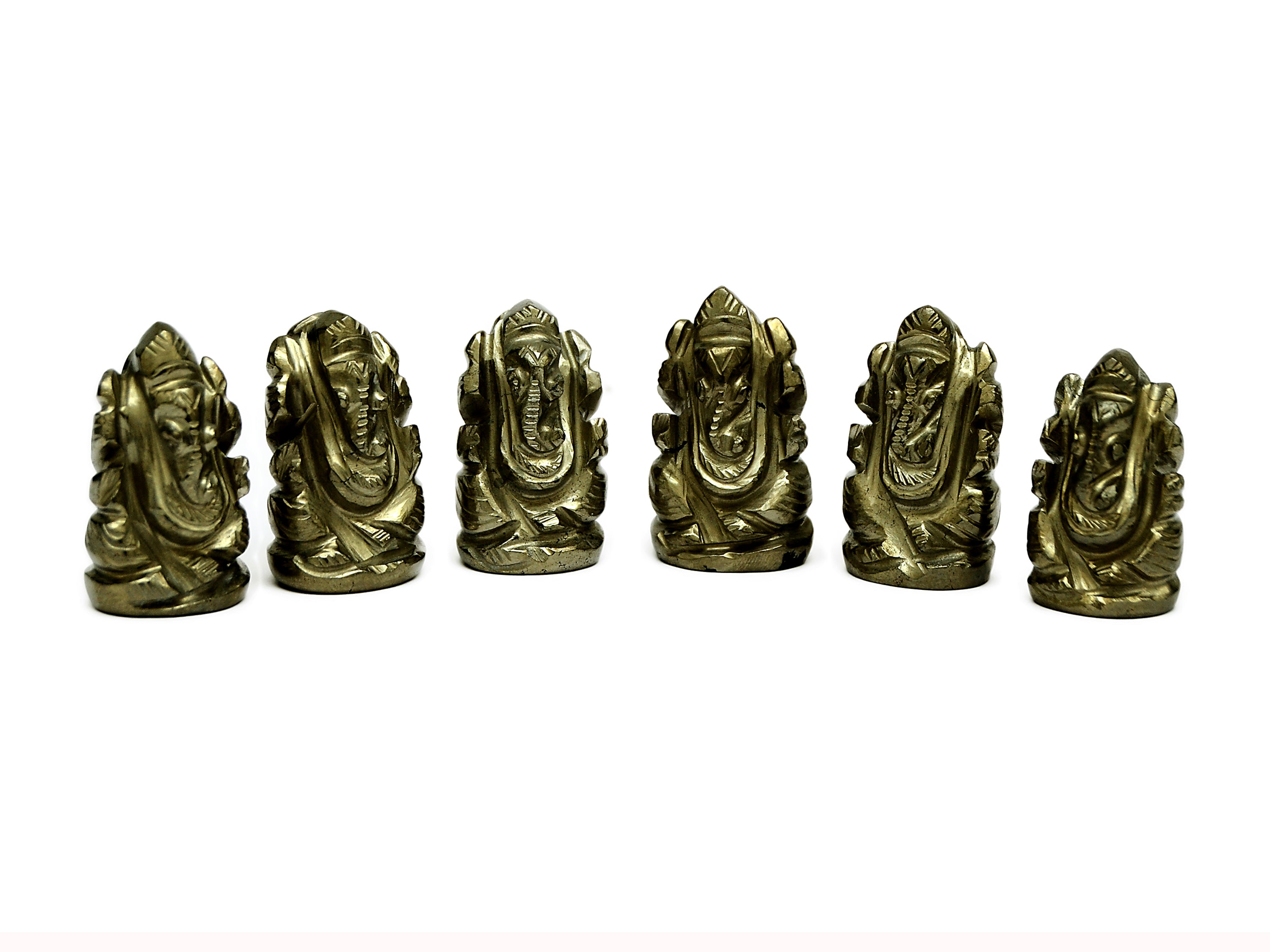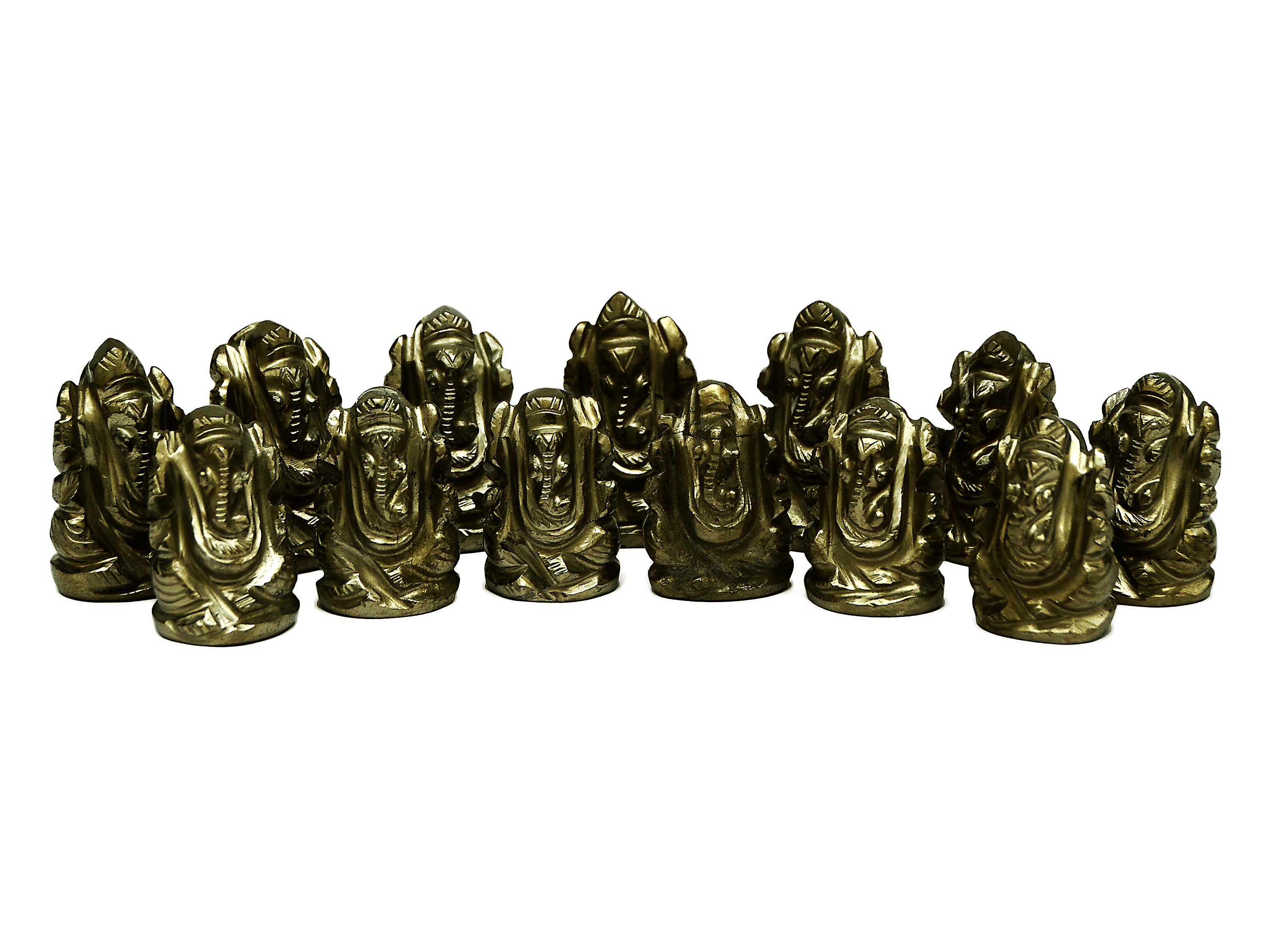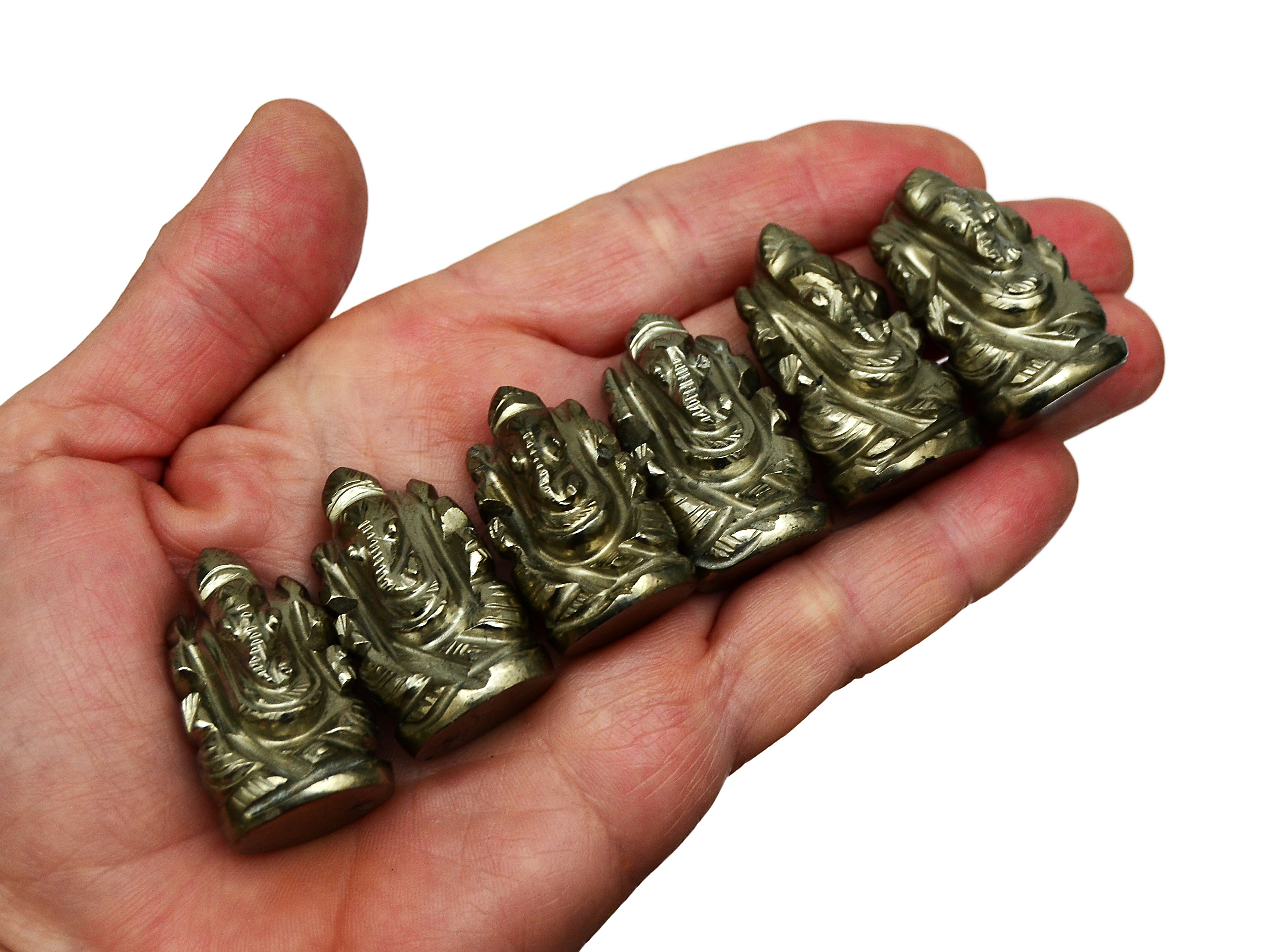 Mini scultura di Ganesha in pirite. Riceverai una figura in pietra intagliata a mano molto simile a quella mostrata nell'immagine sopra, selezionata a caso. Si prega di considerare una leggera variazione in termini di colore e trasparenza, poiché ogni pietra presenta caratteristiche uniche. Nota che tutti i cristalli sono naturali, quindi a volte possono comparire piccole imperfezioni.