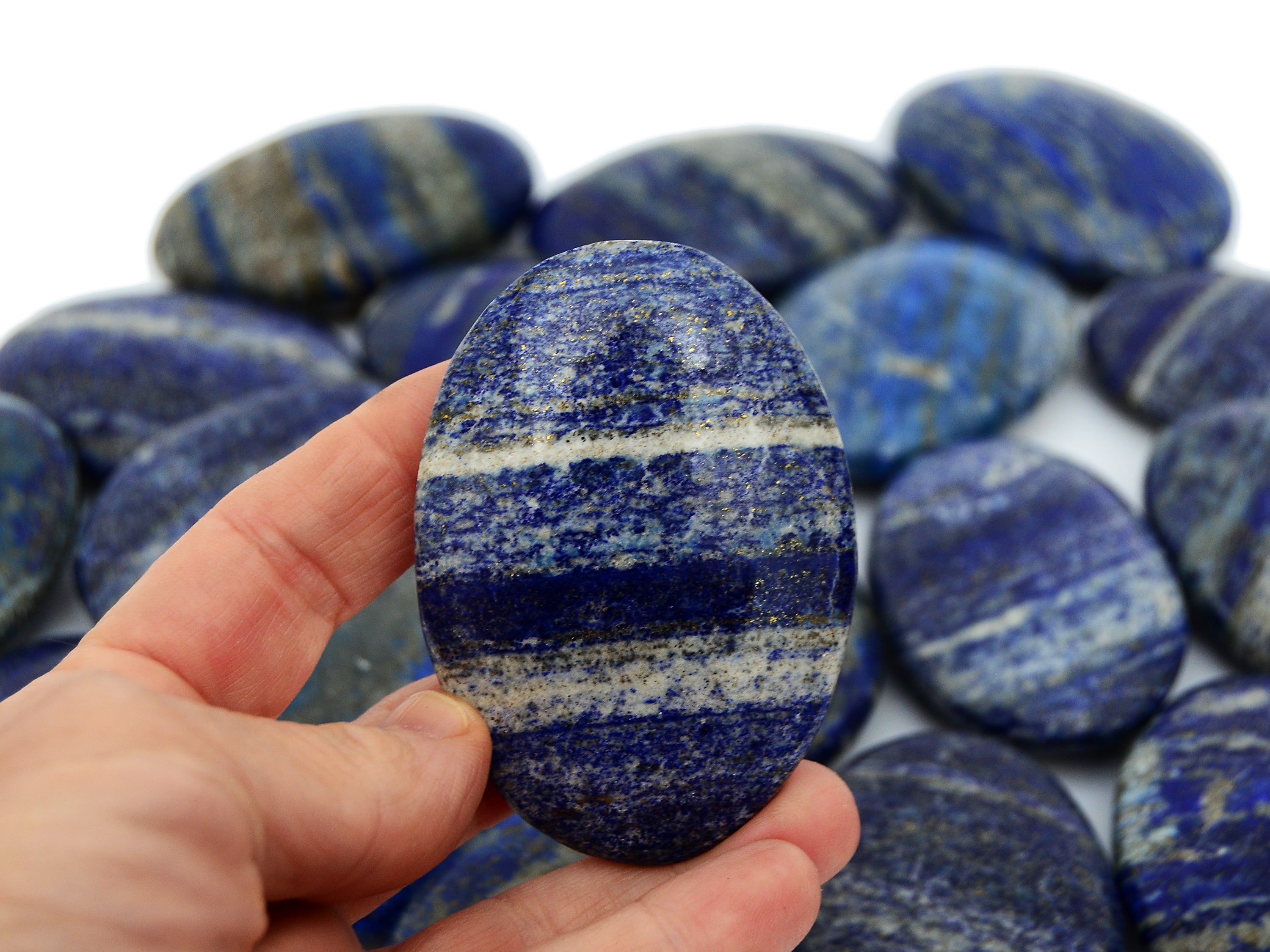 Palm stone de lápis-lazúli. Receberá um cristal natural de lápis-lazúli muito semelhante ao da imagem acima, escolhido aleatoriamente. Por favor, espere alguma variação ligeira em termos de cor, transparência, tamanho e forma, pois existem variações únicas para cada pedra. Note que todos os cristais são naturais, por isso às vezes podem aparecer pequenas imperfeições.